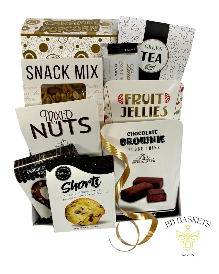 Thoughtfully curated with a mix of comforting flavors and light indulgences, the Sweet & Savory Balance Gift is a versatile and crowd-pleasing option for any occasion. Blending sweet treats with satisfying snacks and a calming tea element, this gift is perfect for personal celebrations, thank-you gestures, get-well wishes, or polished corporate gifting.